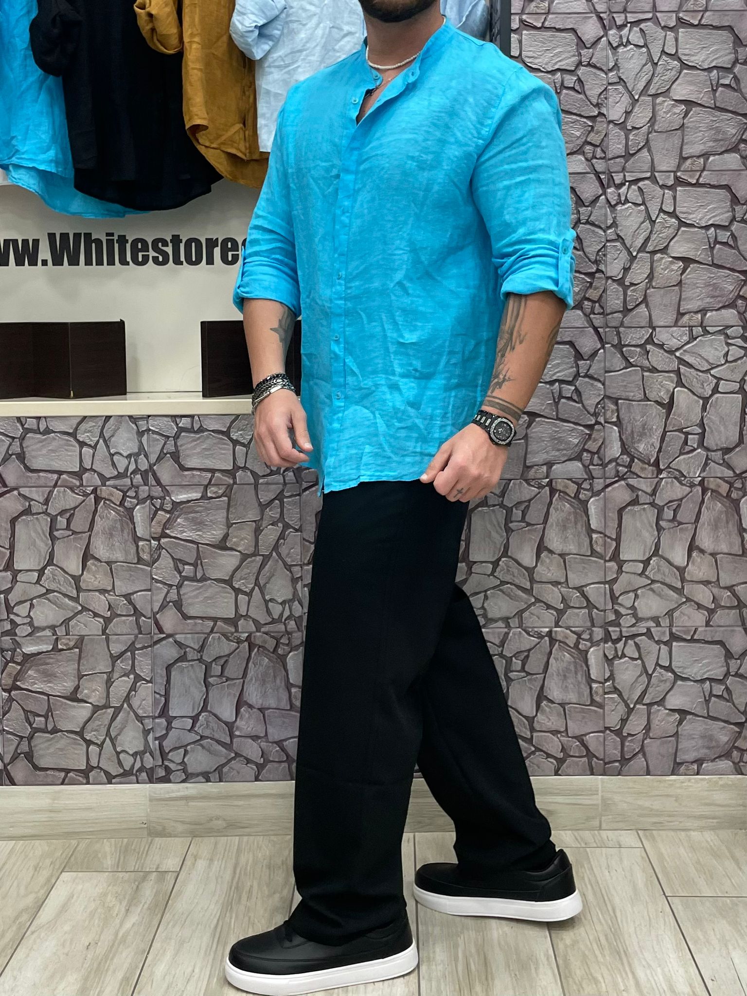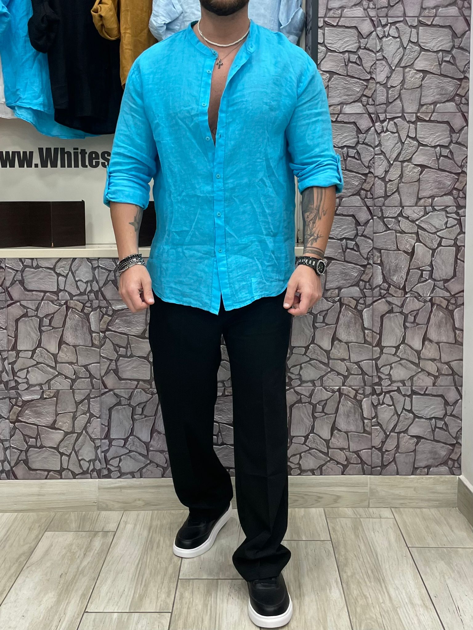 Camicia 100% Lino colore Turchese