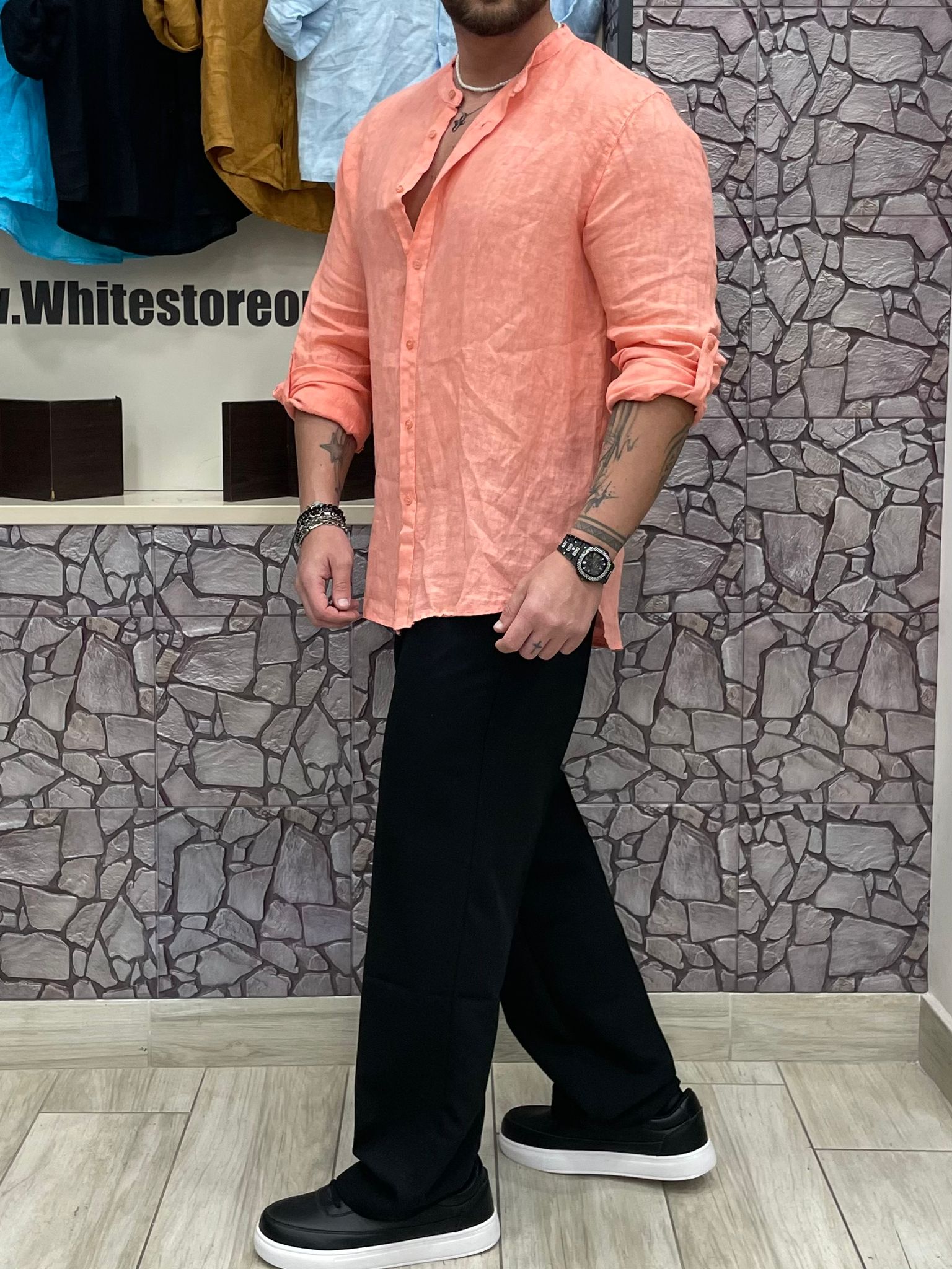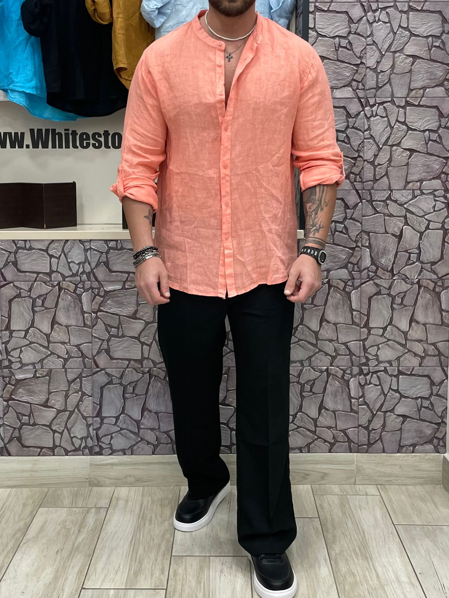 Camicia 100% Lino colore Salmone