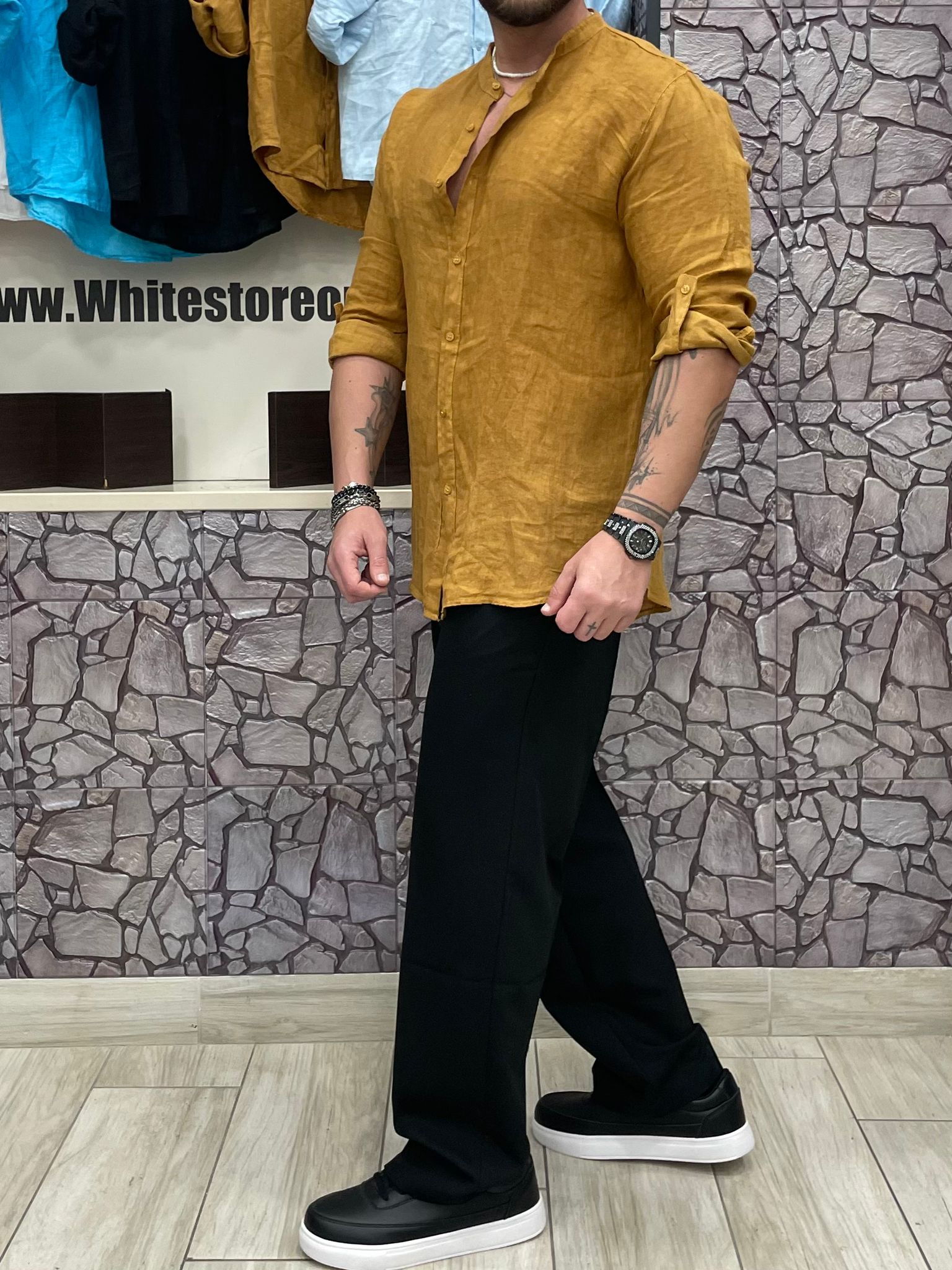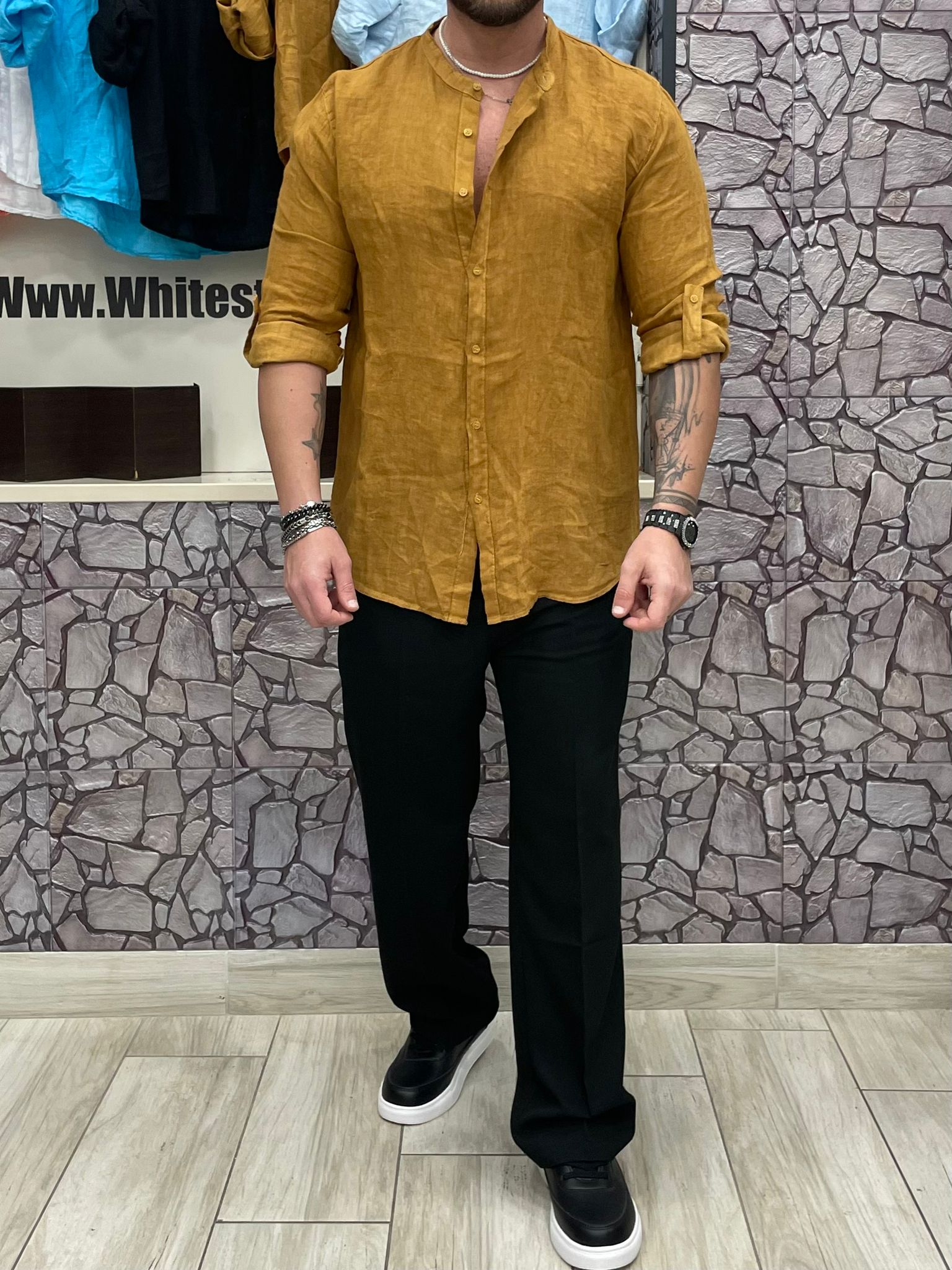 Camicia di lino colore Senape