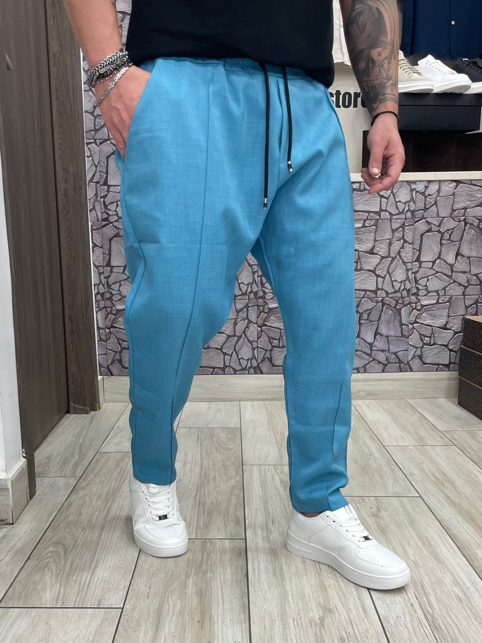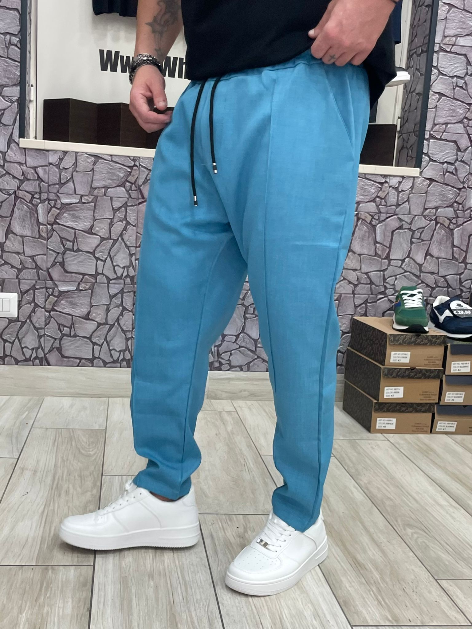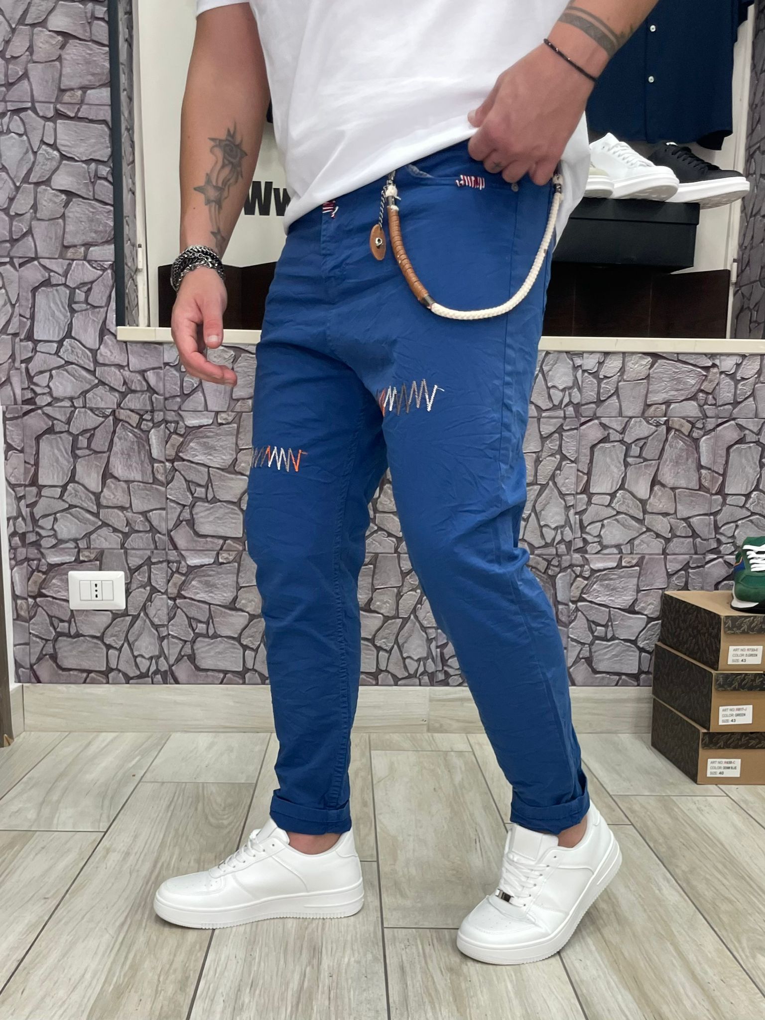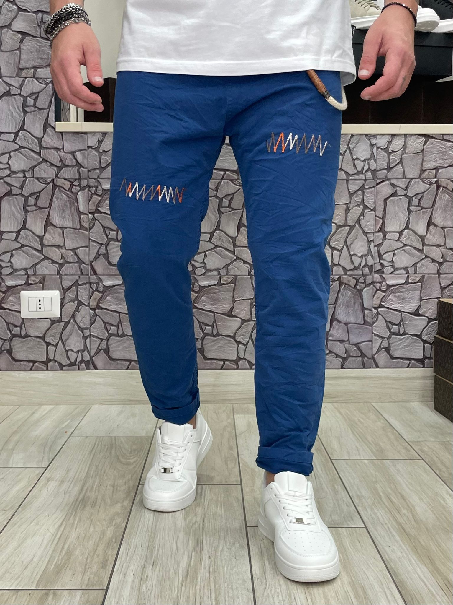 Pantalone outfit con fantasia ricamo colore Blu royal