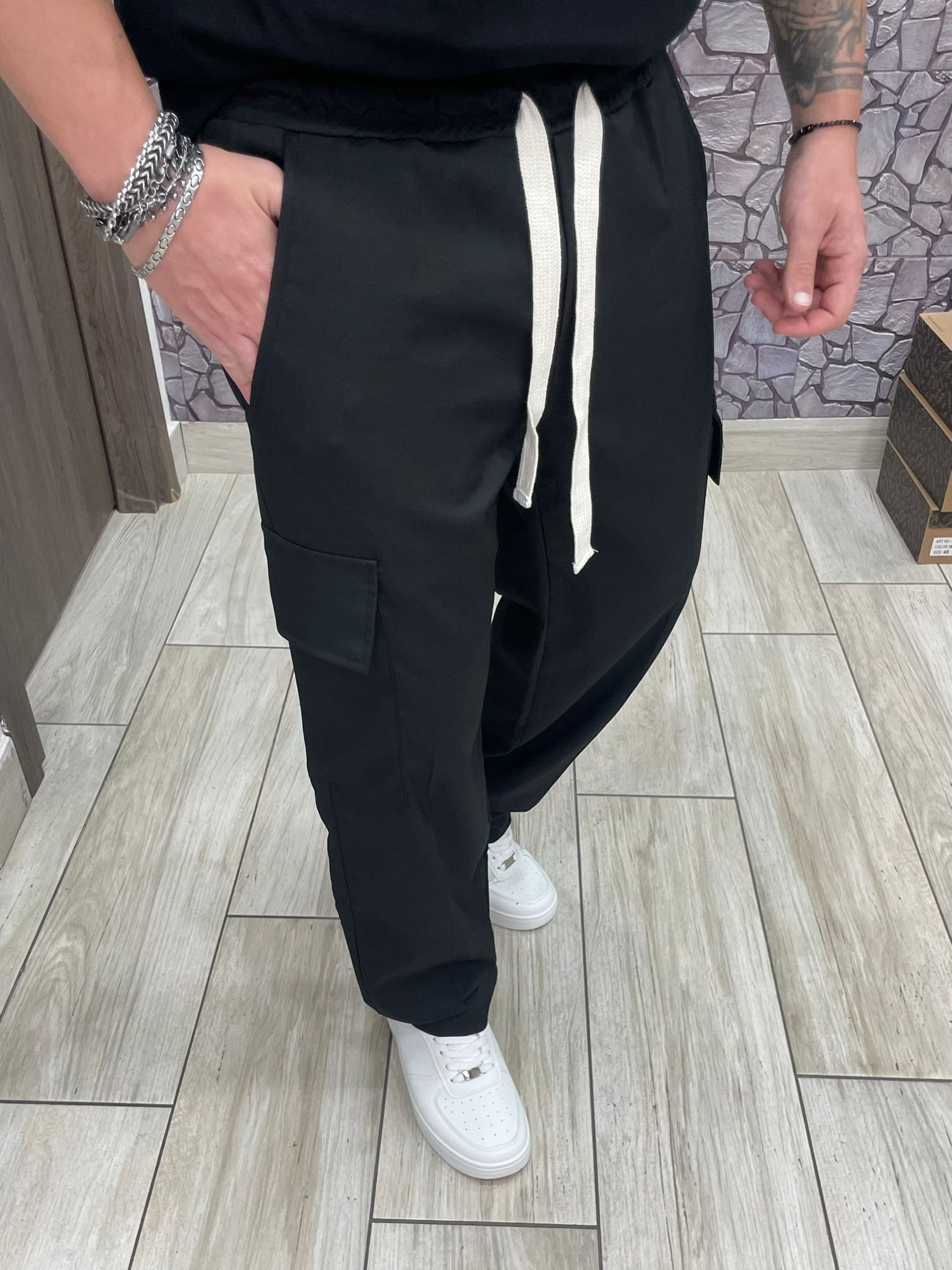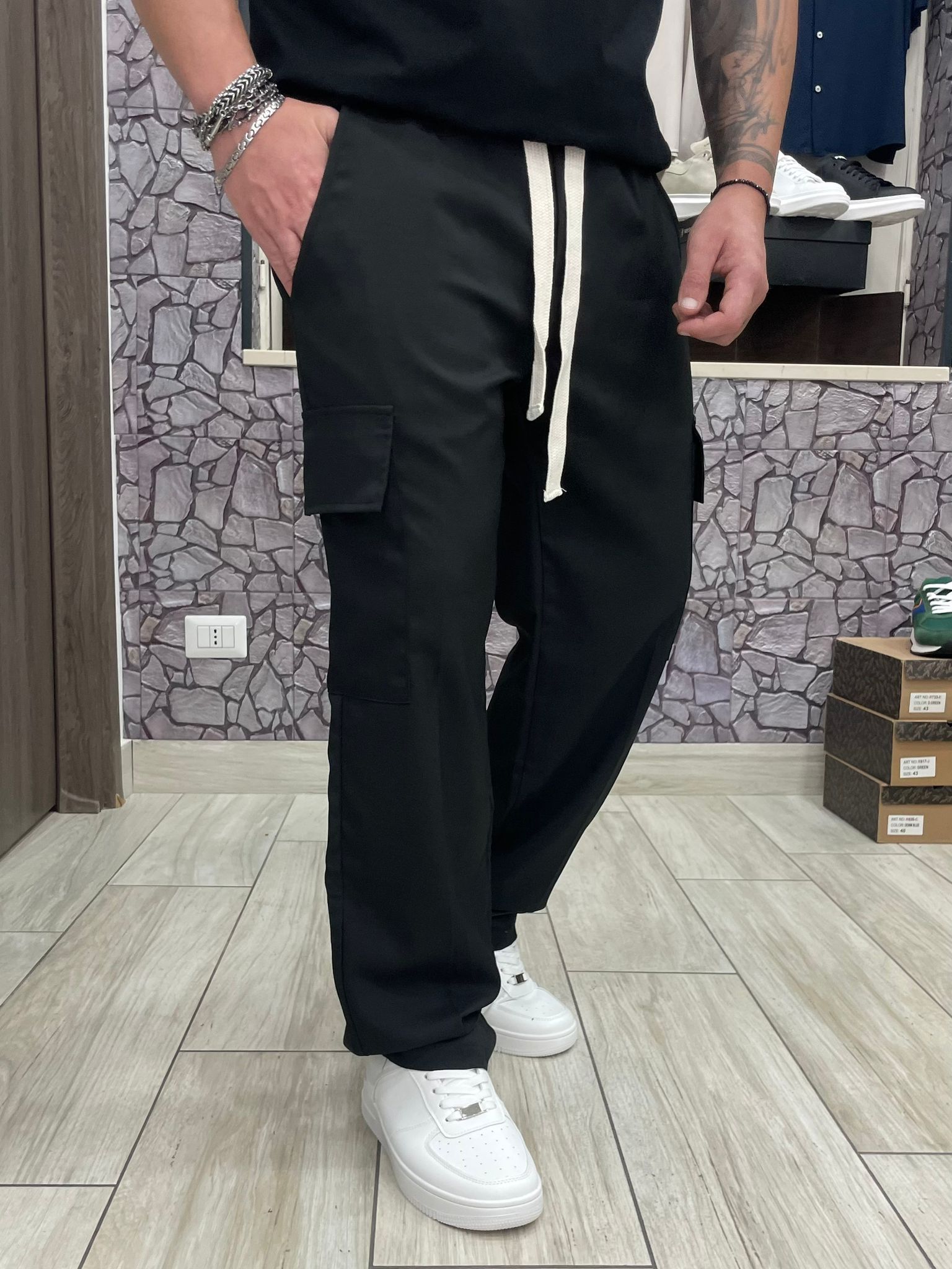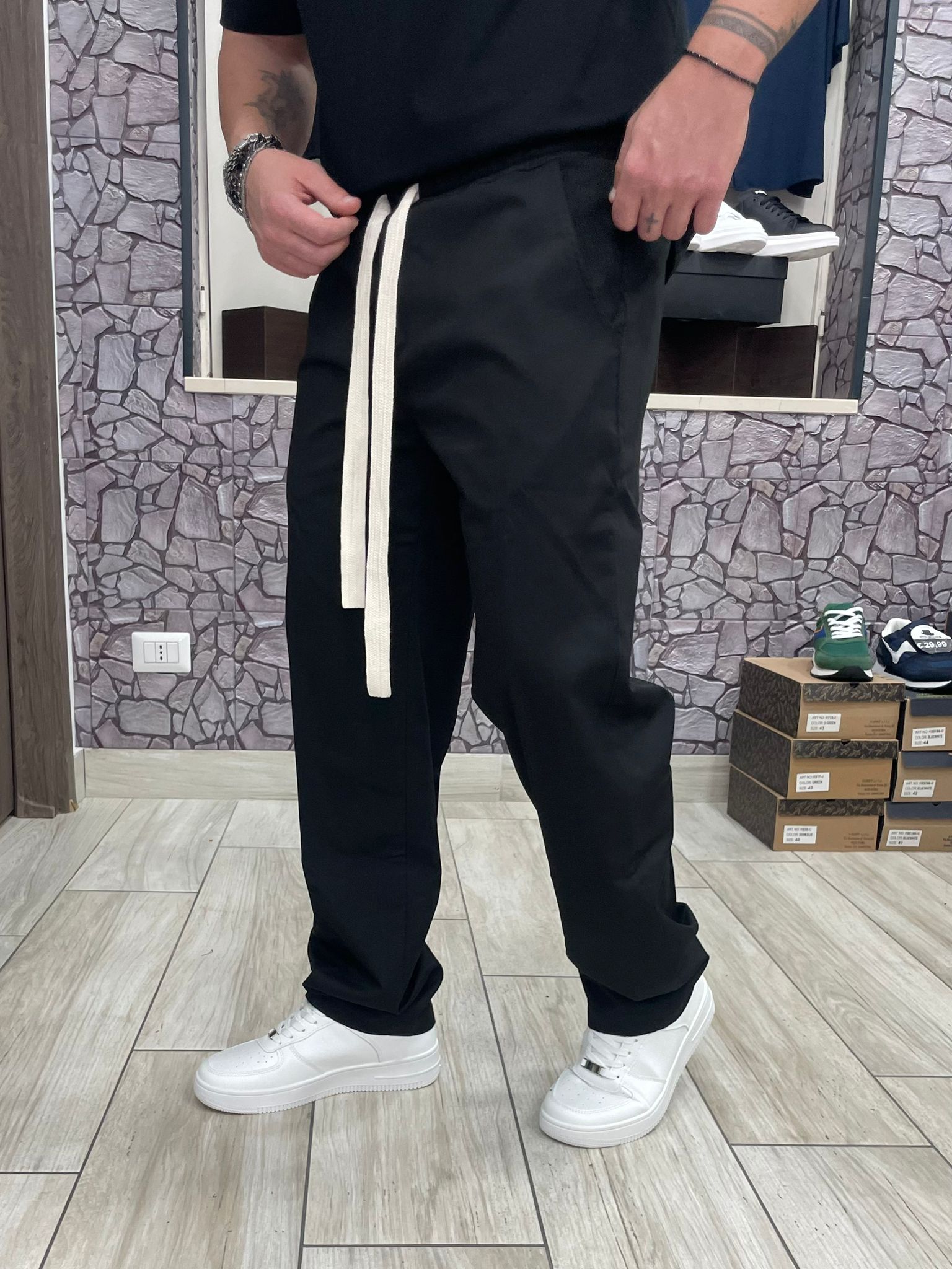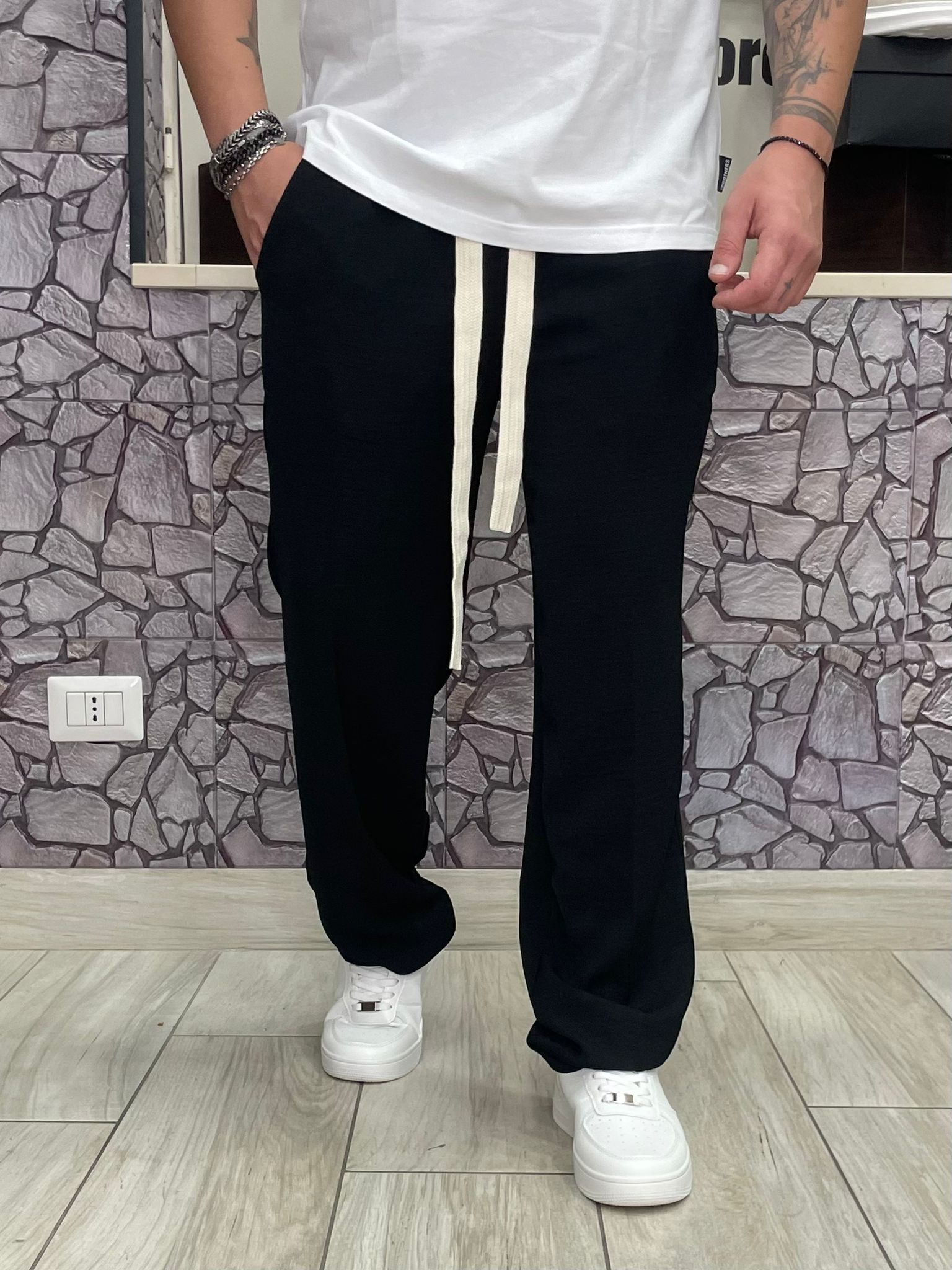 Pantalone fondo largo con laccio regolabile in vita colore Nero