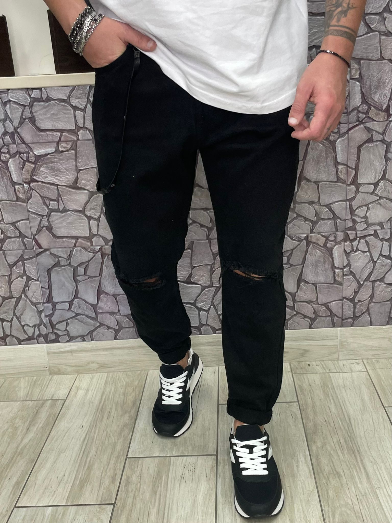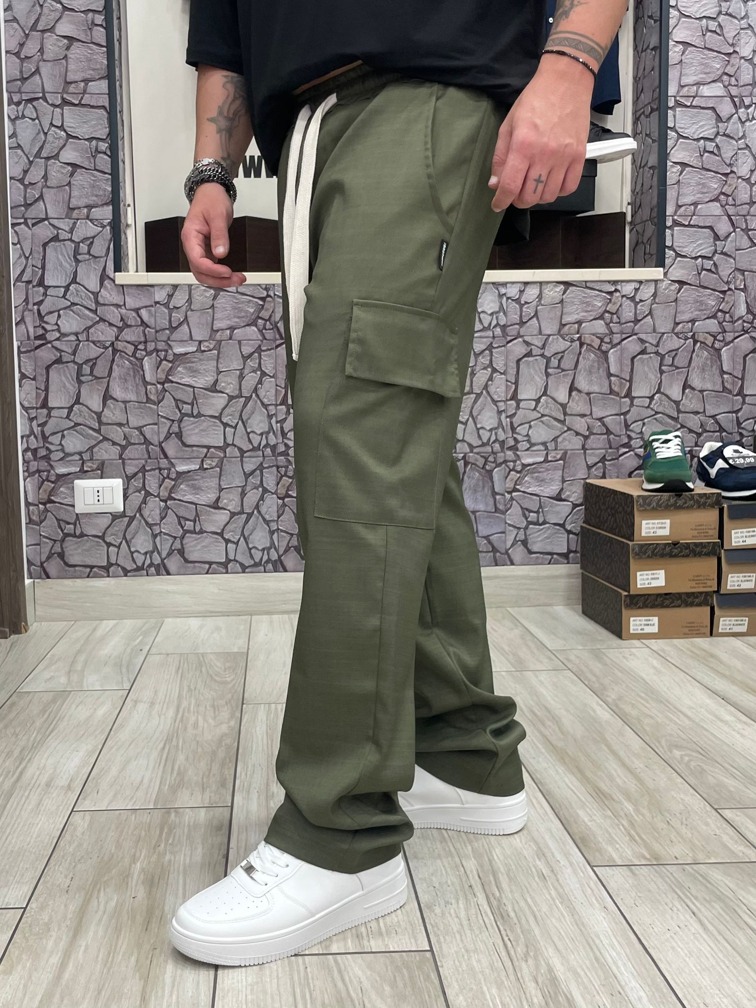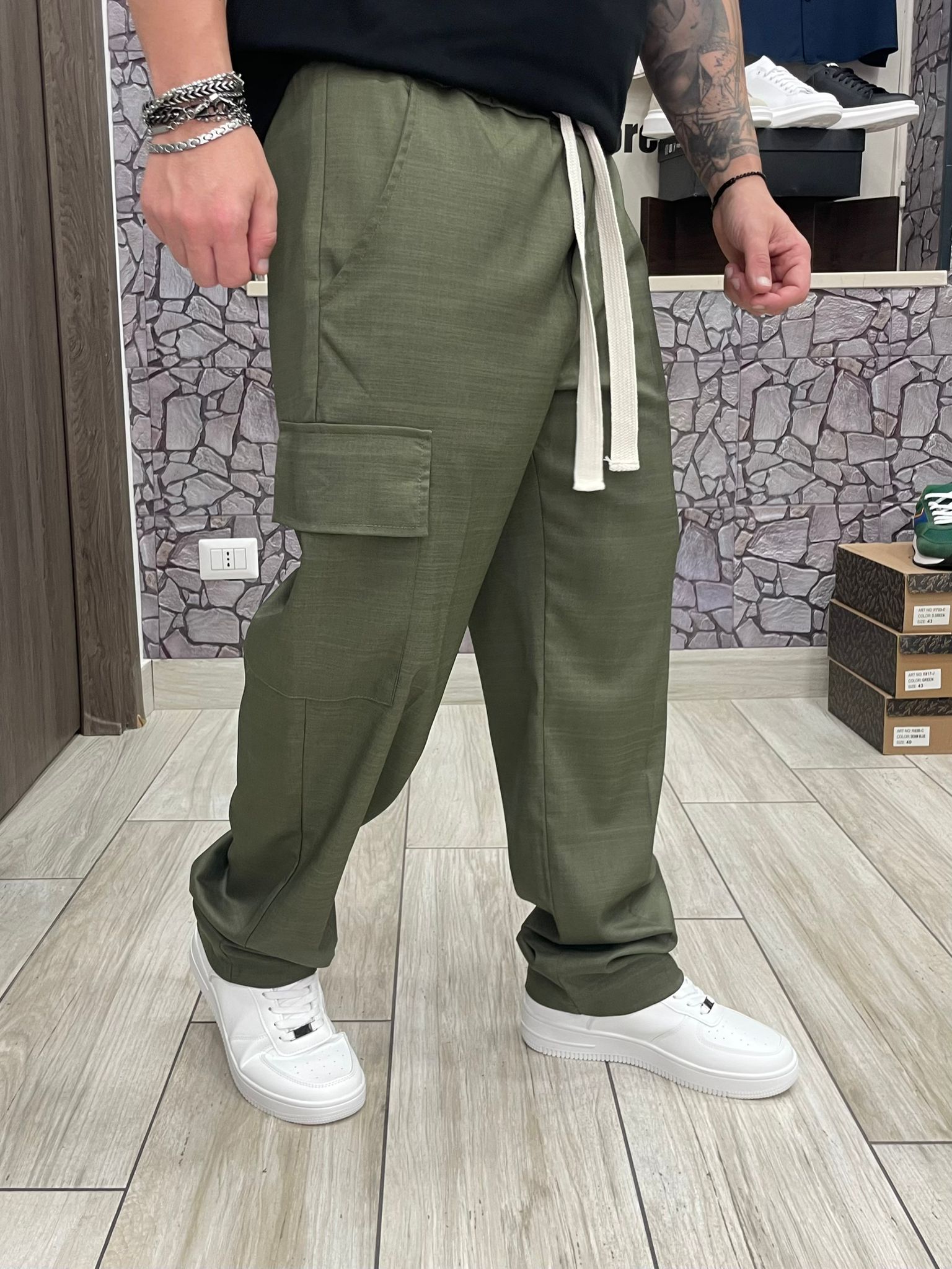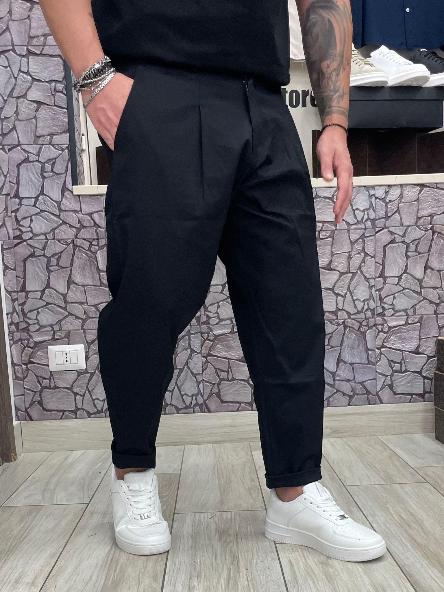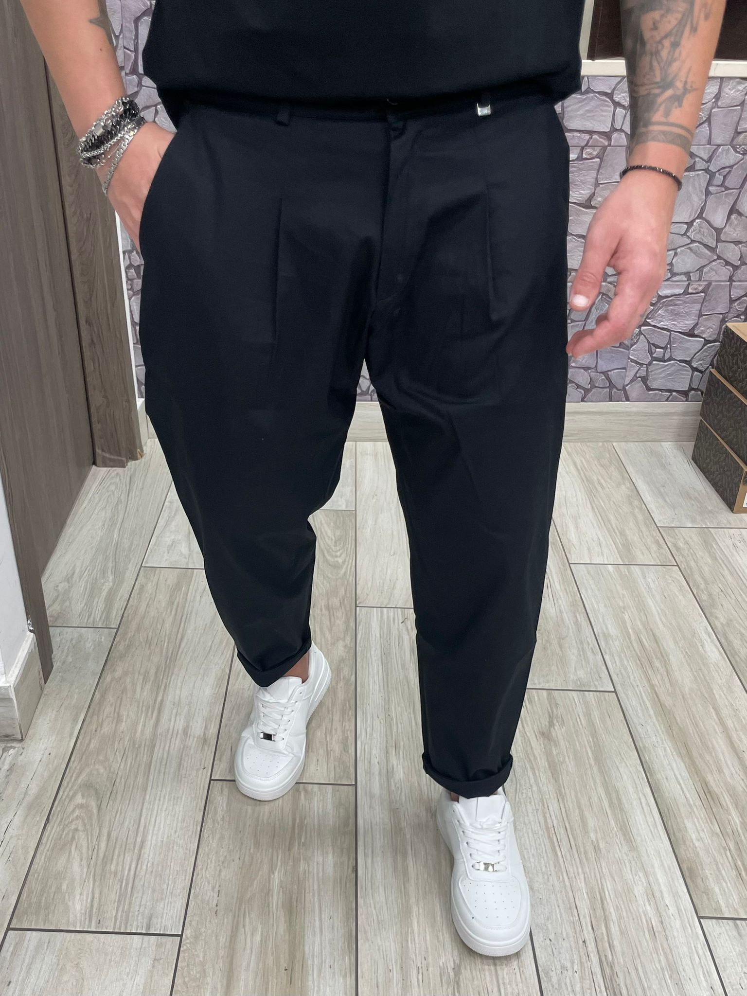 Pantalone fondo largo con laccio regolabile in vita colore Nero