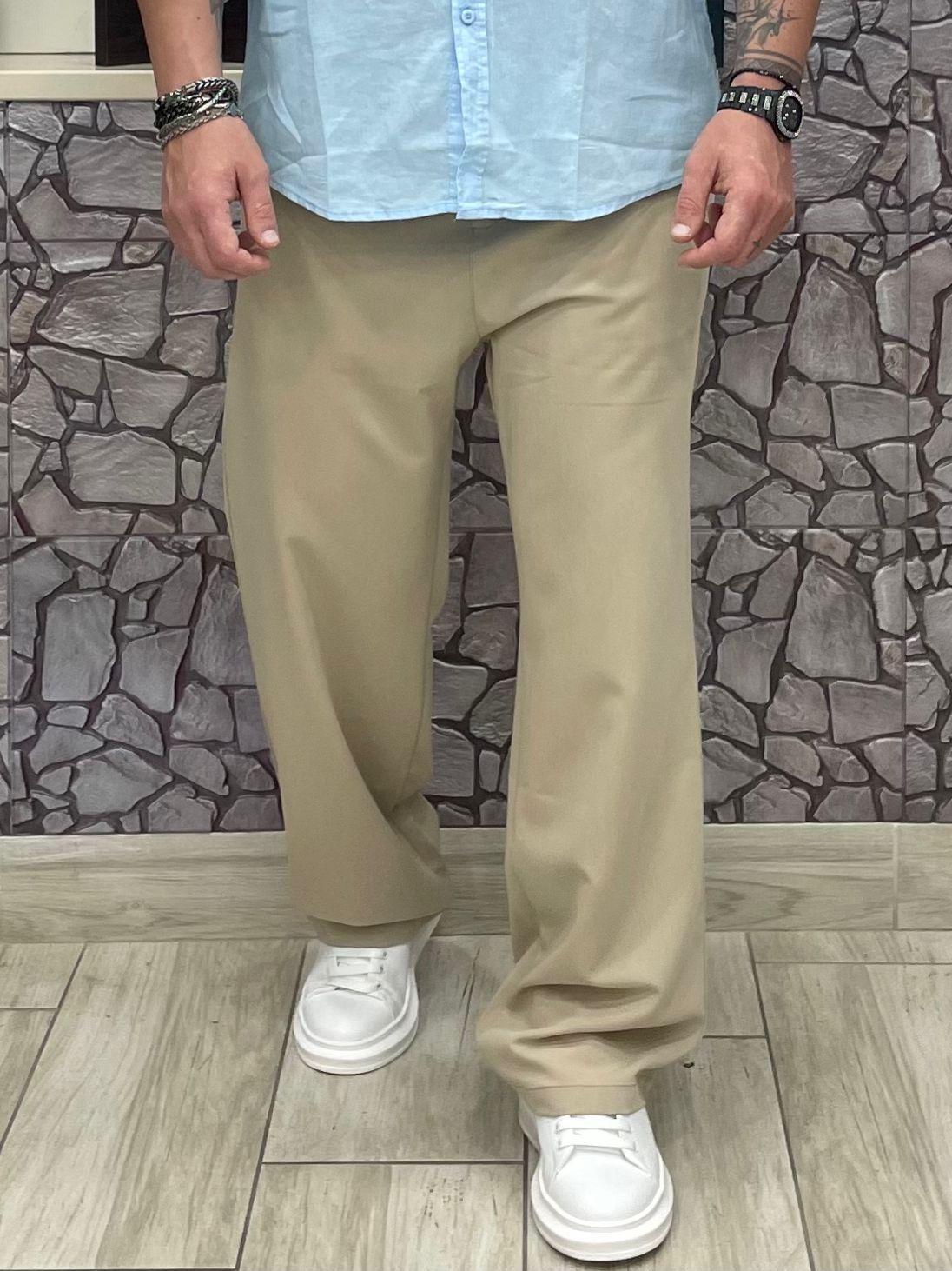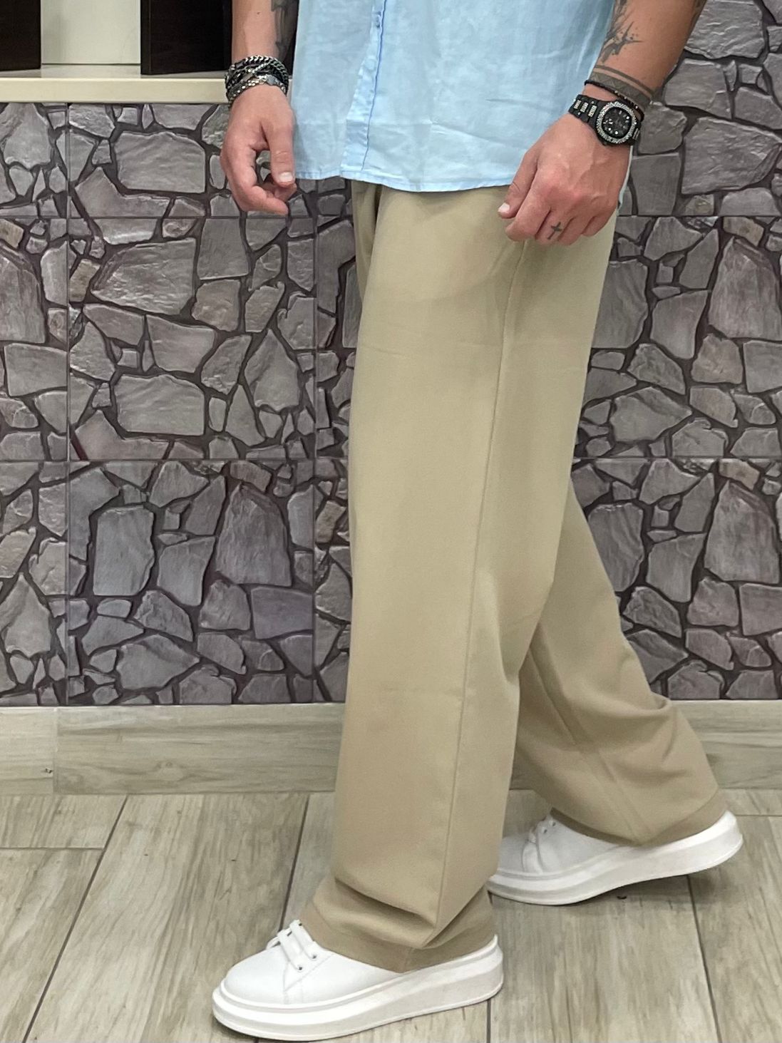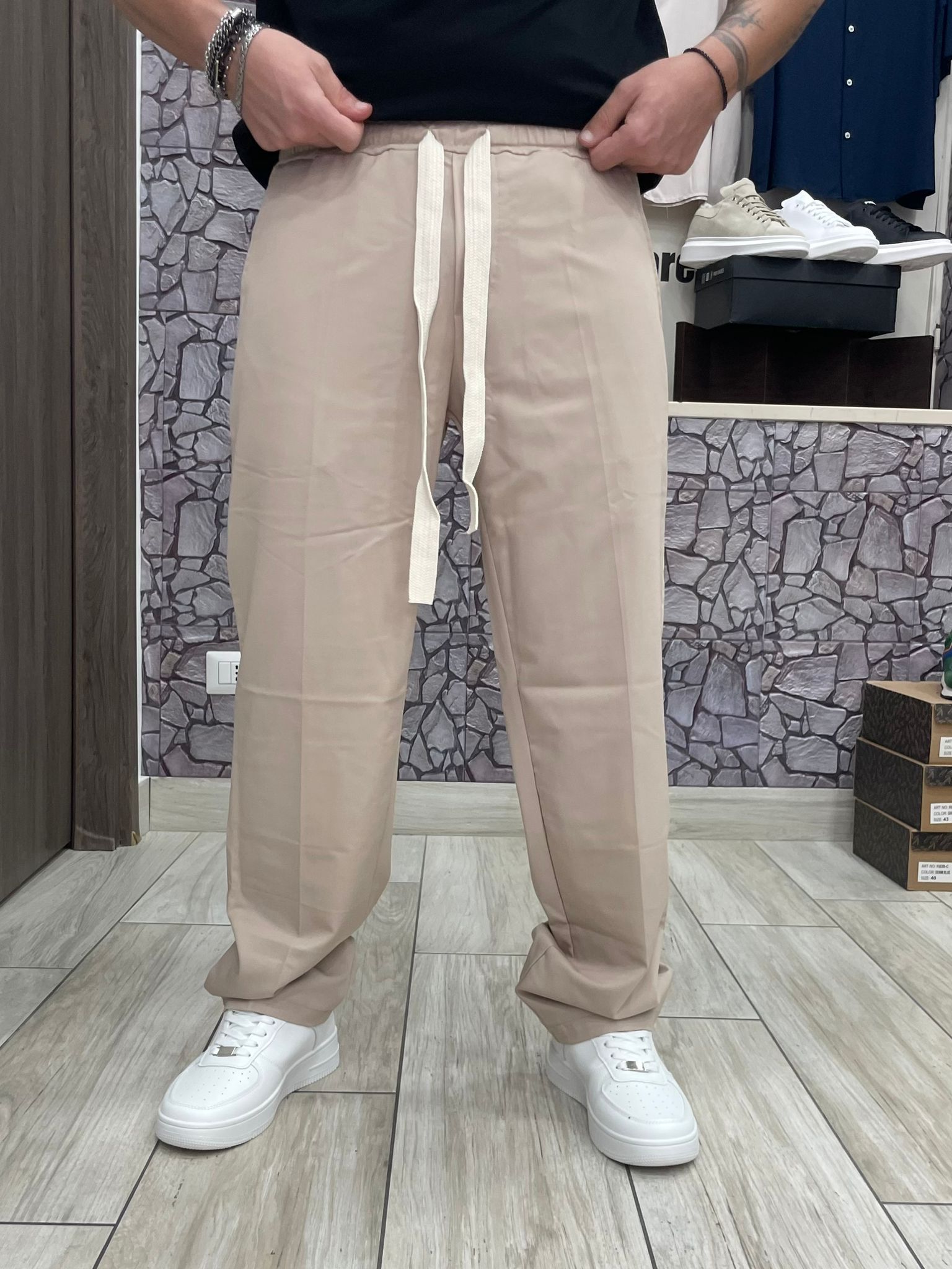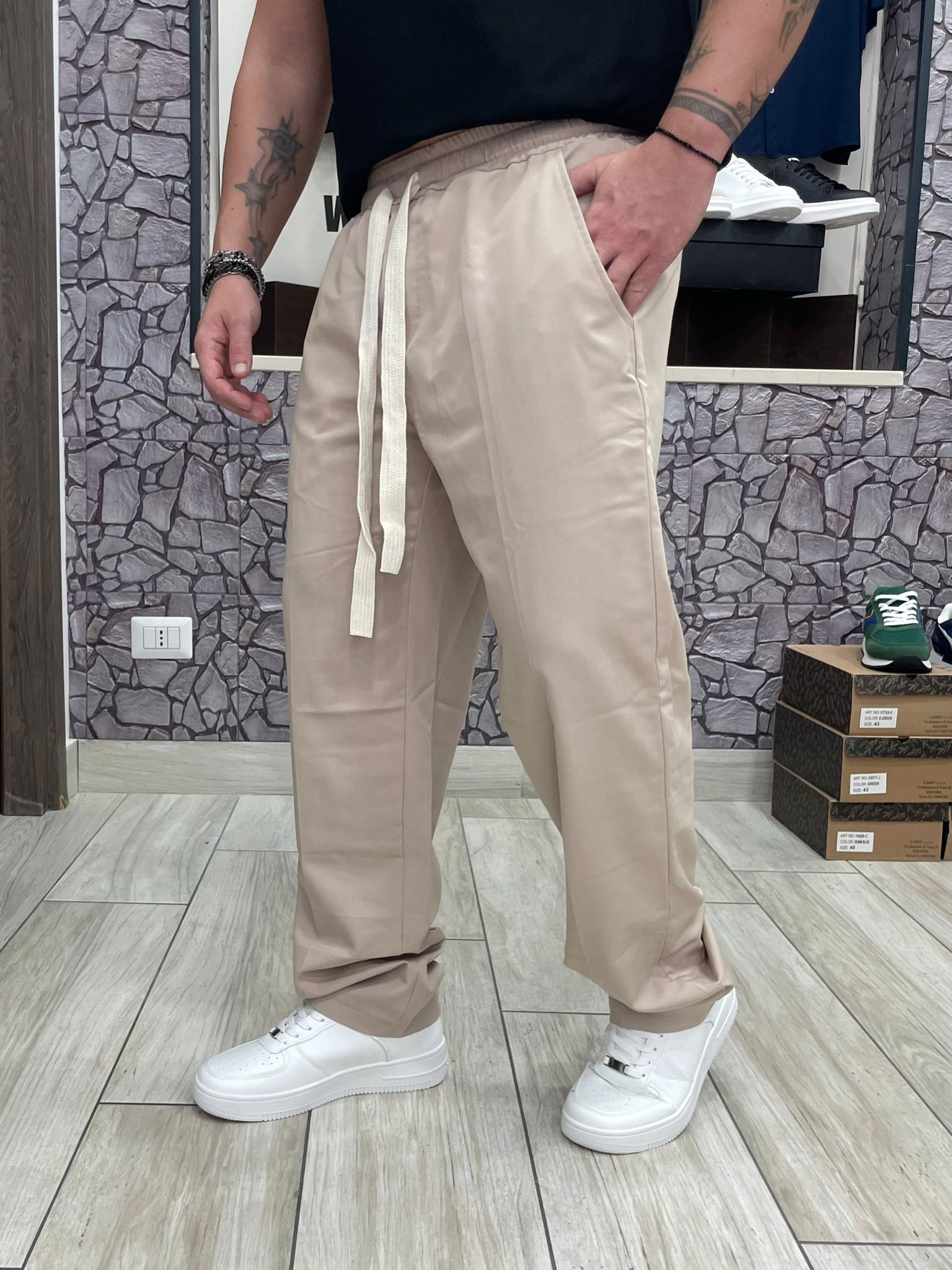 Pantalone fondo largo con laccio regolabile in vita colore Beige