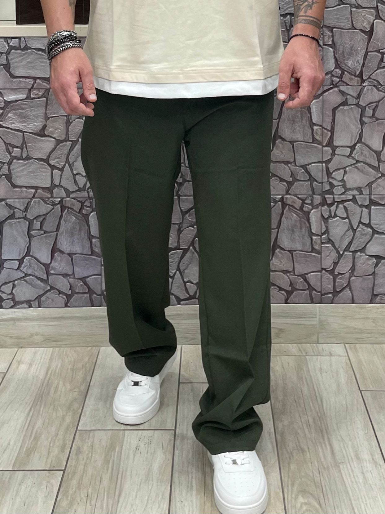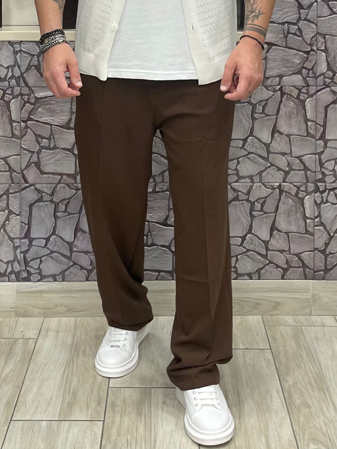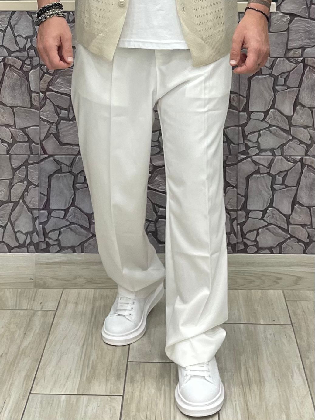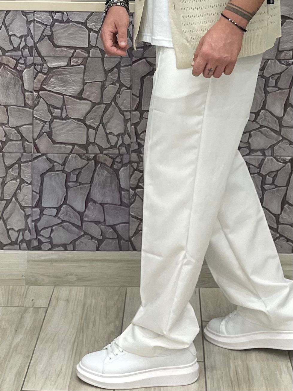 Pantalone fondo largo con laccio regolabile in vita colore Beige